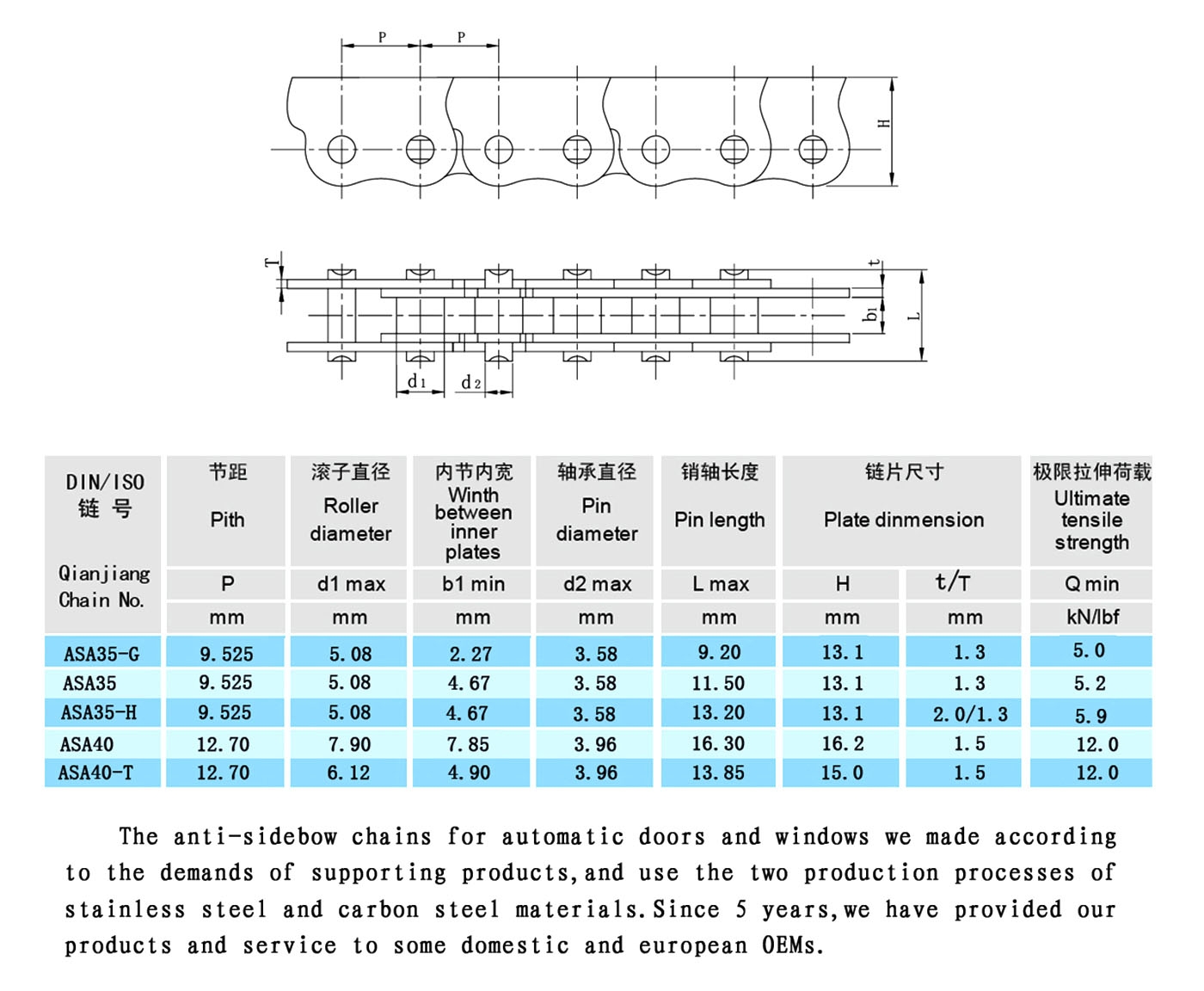 Inteligentnú dvernú a okennú retiazku proti prehýbaniu je možné aplikovať na horné závesné okno, vnútorné prevrátené okno, vonkajšie prevrátené okno, opláštené okno, ploché posuvné okno, svetlík a podobne. Poháňané elektrinou. Reťaz je ošetrená procesom antikorózneho spevňovania povrchu z vysoko kvalitnej ocele a zliatiny zinku a niklu a test soľným sprejom dosahuje 150 hodín. Vyznačuje sa veľkou silou tlaku a ťahu, nízkou hlučnosťou a dobrou stabilitou.