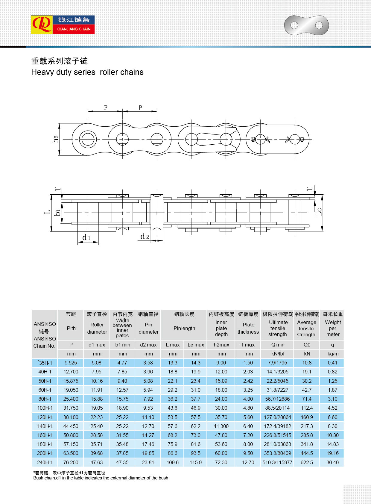 Valčekové reťaze série pre veľké zaťaženie